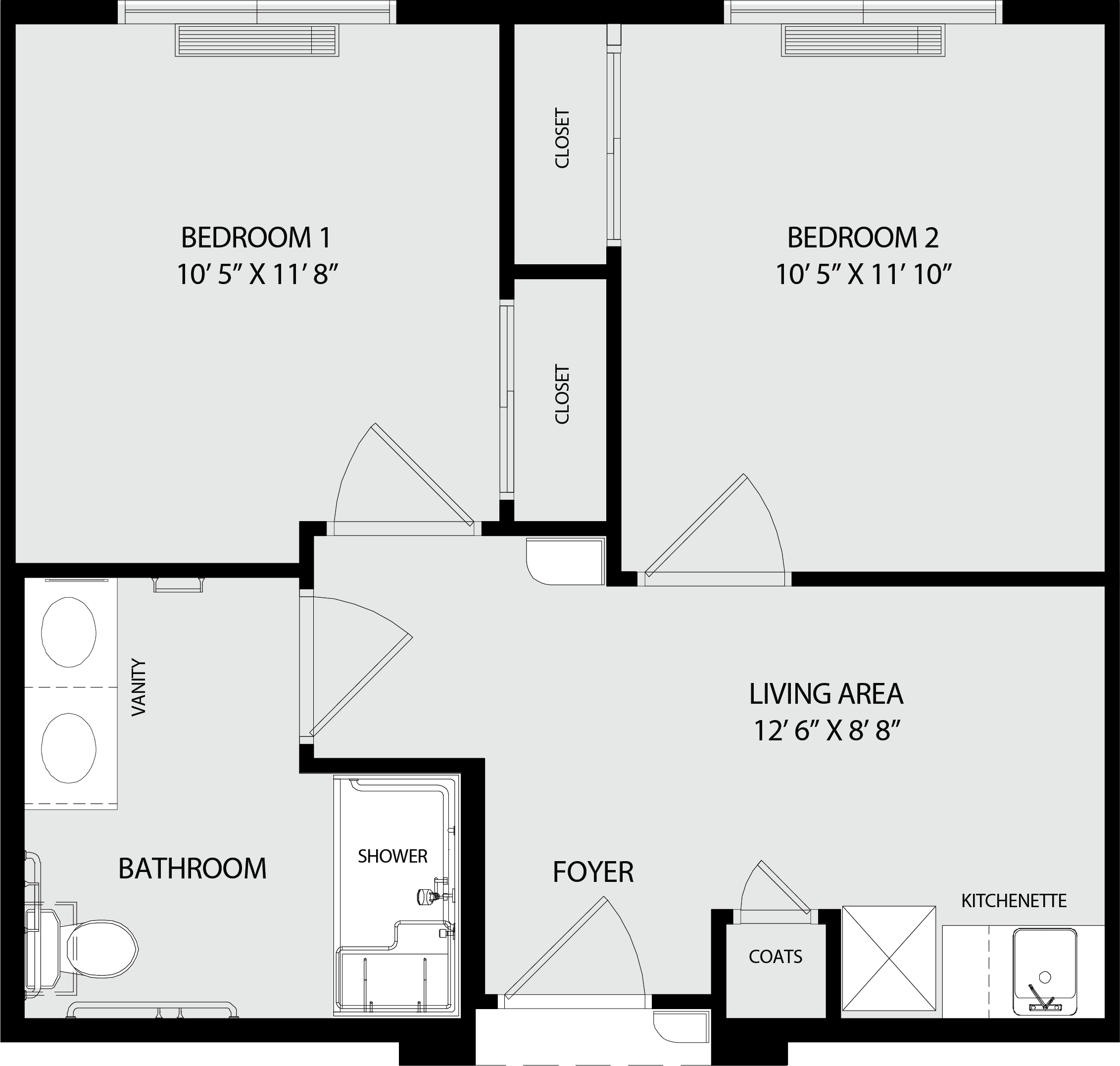 Whether you’re looking for a cozy studio or a larger apartment with extra room for guests, our layouts are designed to feel both personal and practical. Each apartment provides the comfort of home with the reassurance that support is always nearby.