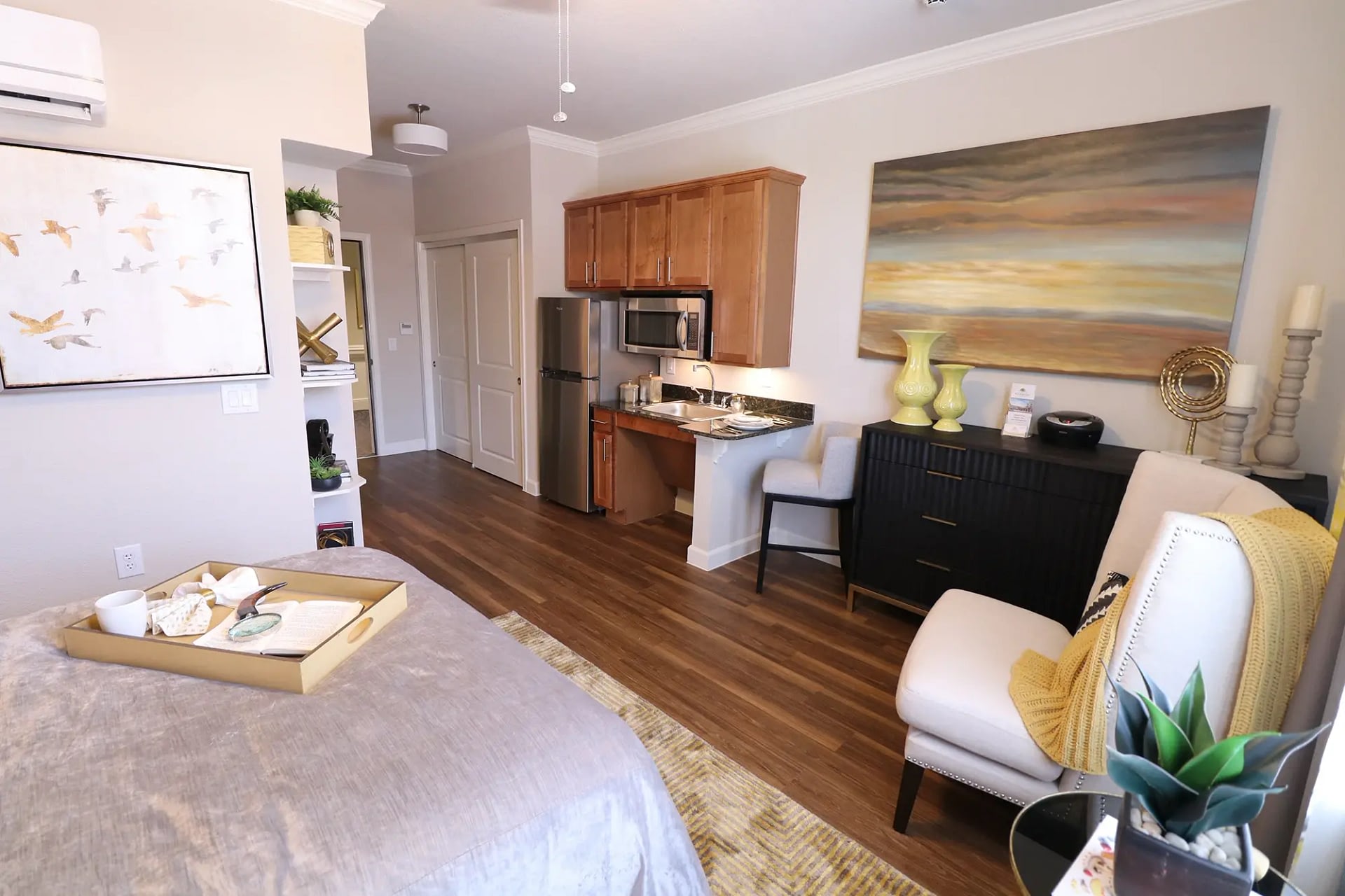 At The Landing at Watermere Frisco, we offer thoughtfully designed floor plans that balance comfort, convenience, and safety. Choose from private studios and one- or two-bedroom layouts, each crafted to provide independence while offering the peace of mind that support is always nearby.