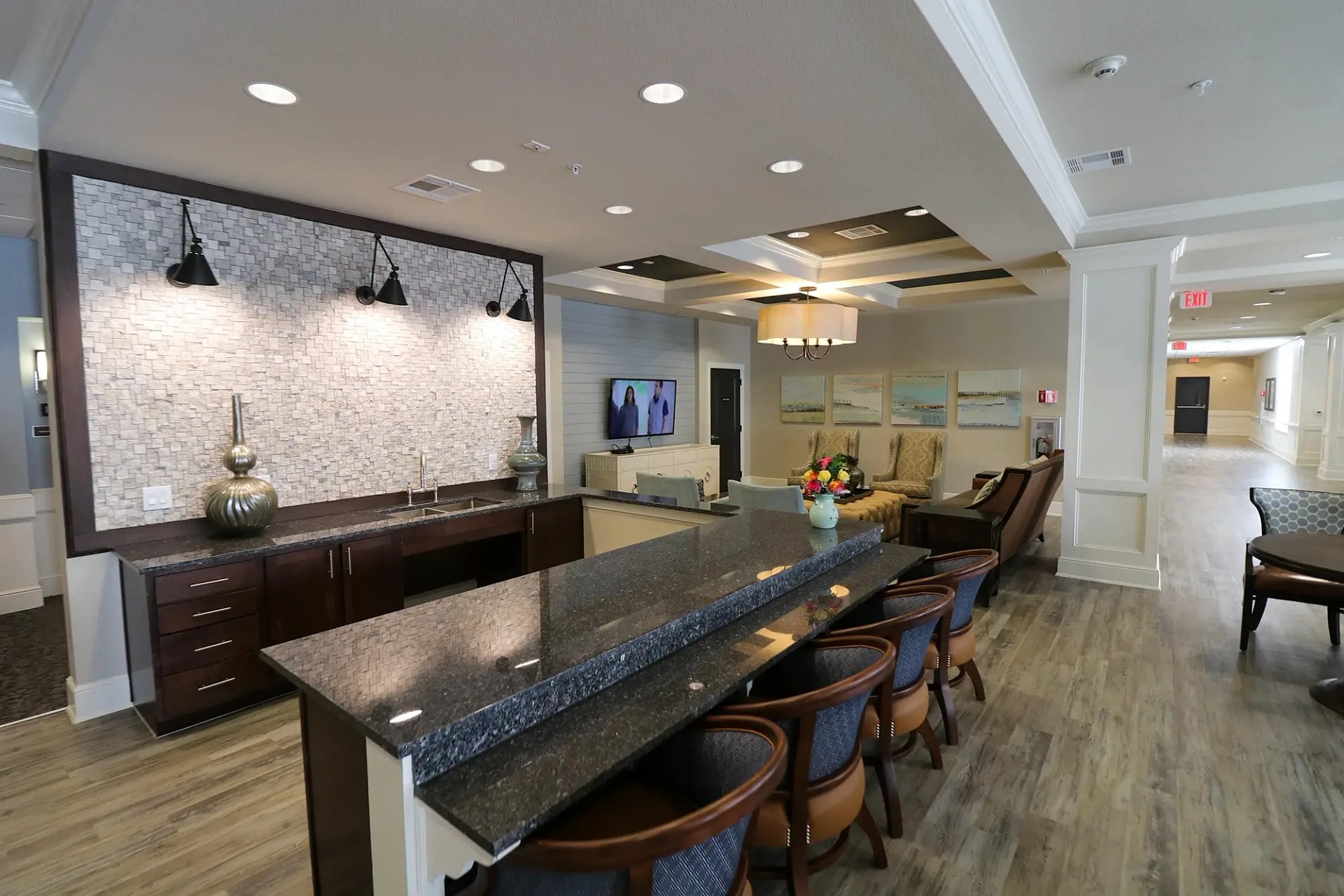 A picture is worth more than words when it comes to imagining the next chapter. Explore our photo gallery to see daily life at The Landing at Watermere Frisco. From warm dining rooms and cozy lounges to landscaped courtyards and wellness areas, every detail is designed to create a welcoming environment where residents and families feel at home.