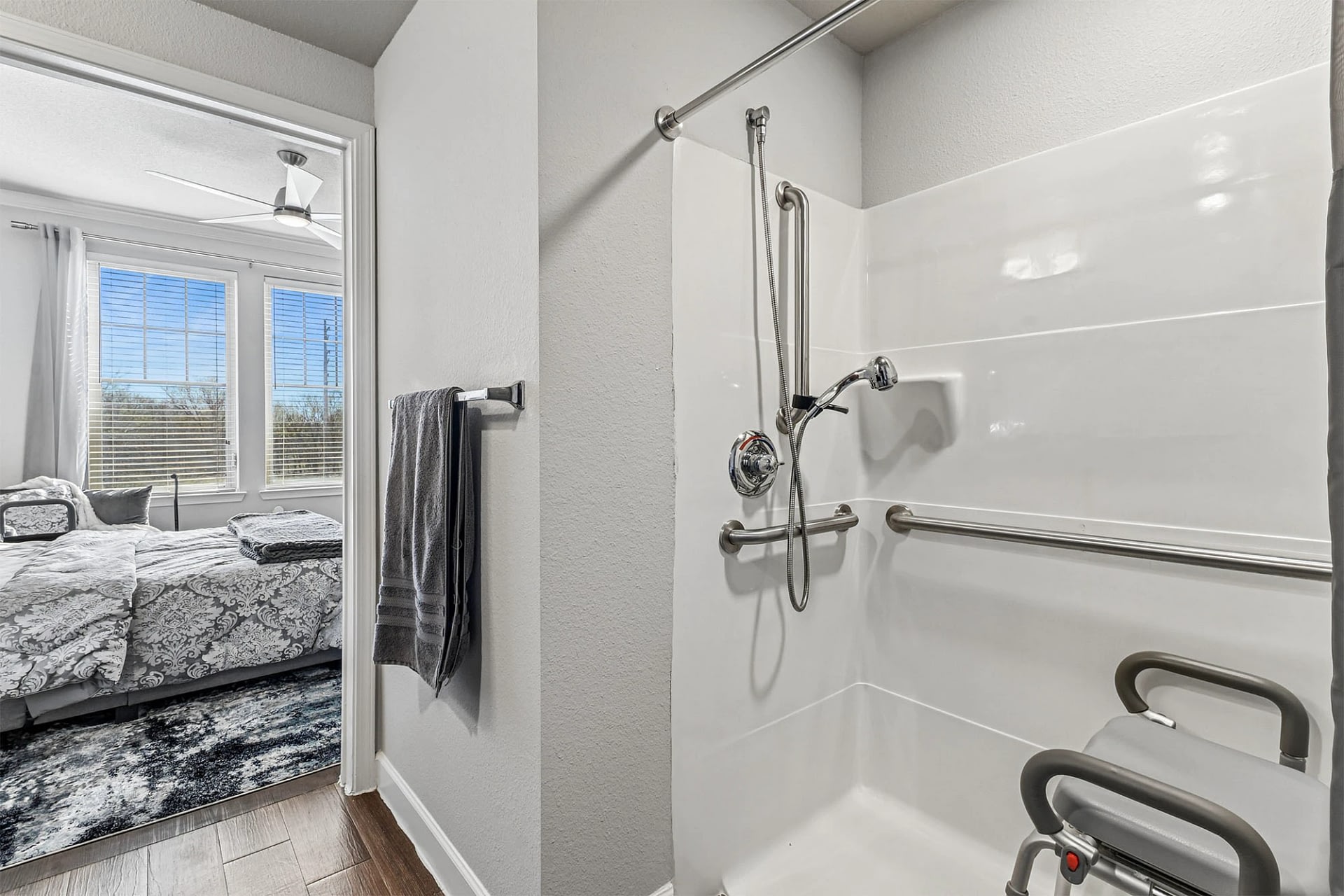Our apartments feature accessibility-focused designs such as wide doorways, private baths with safety grab bars, and motion-sensor lighting. Modern finishes like granite countertops, spacious closets, and large windows add style and comfort, while private patios or balconies in select apartments provide relaxing outdoor space.