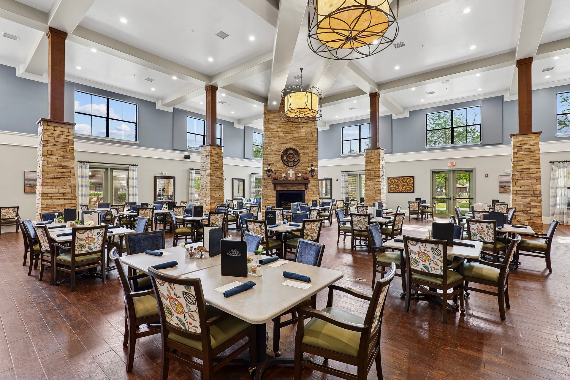 Each independent living residence features upscale finishes such as granite countertops, custom cabinetry, and spacious walk-in closets, along with nine-foot ceilings and expansive windows that fill your home with natural light. Many apartments include private patios or balconies, creating the perfect space to enjoy the outdoors. Full-size kitchen appliances, personal laundry rooms with washer/dryer connections, and abundant storage add everyday convenience, while accessibility features are built in to support both safety and long-term comfort.