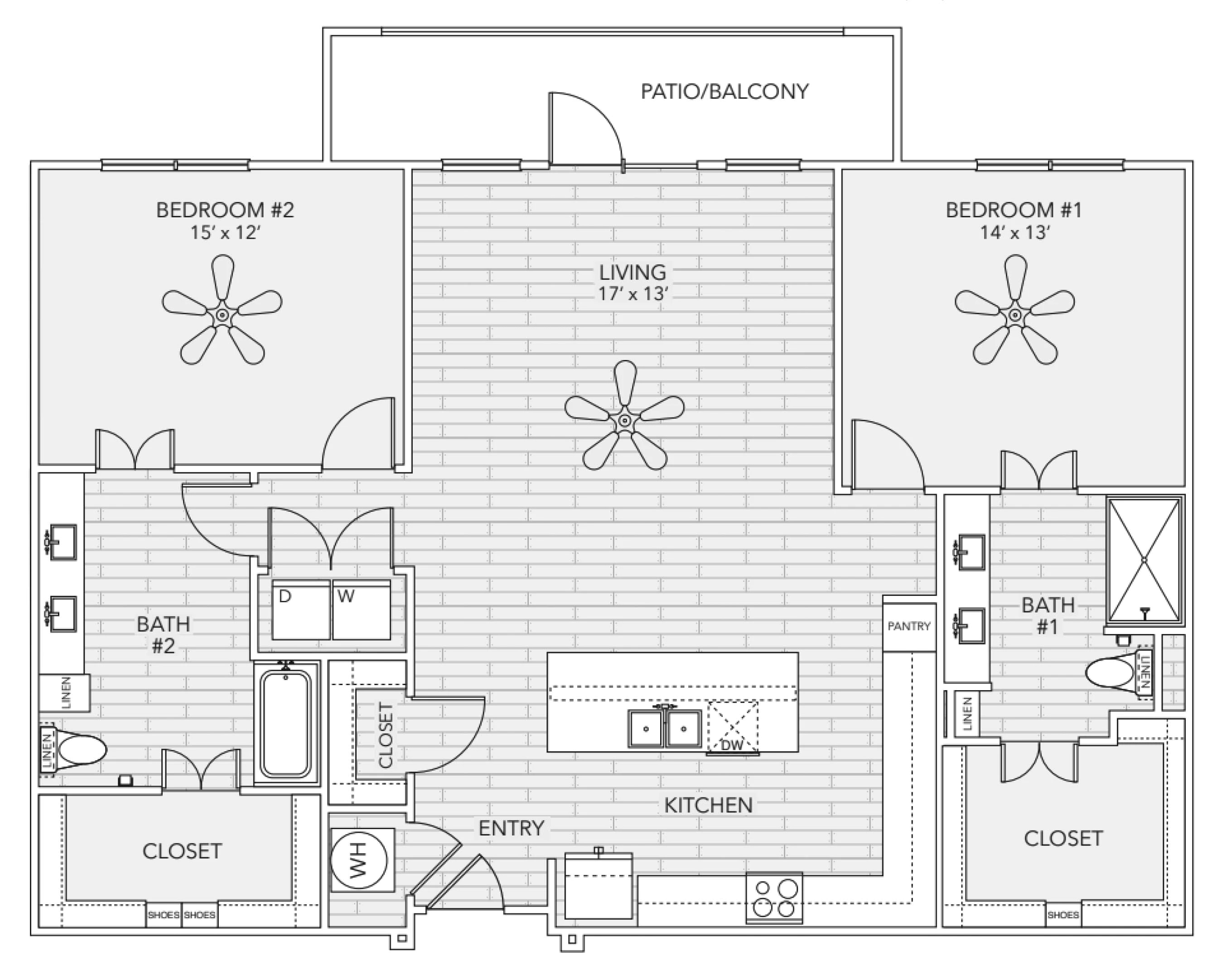 Spacious walk-in closets and built-in shelving make organization easy, and every apartment includes full-size washer and dryer connections for your convenience. Select residences also feature private patios or balconies, dual vanities, walk-in showers, or garden tubsโperfect for creating a home that fits your lifestyle.
