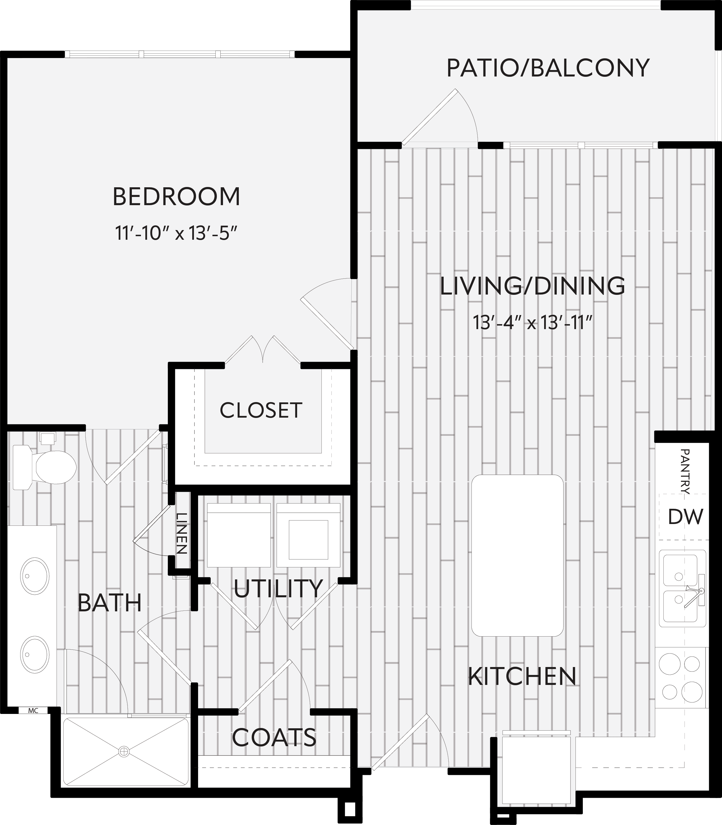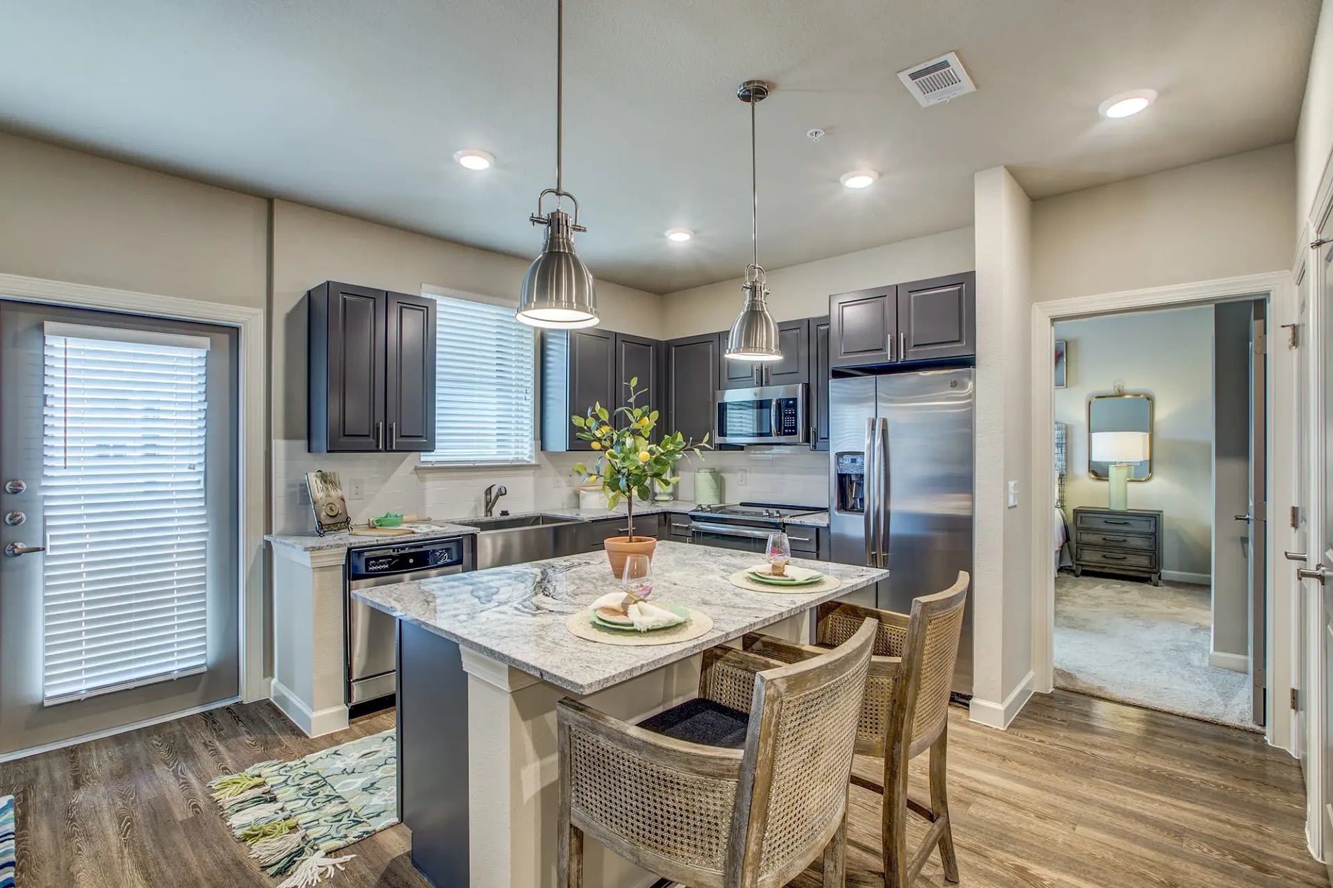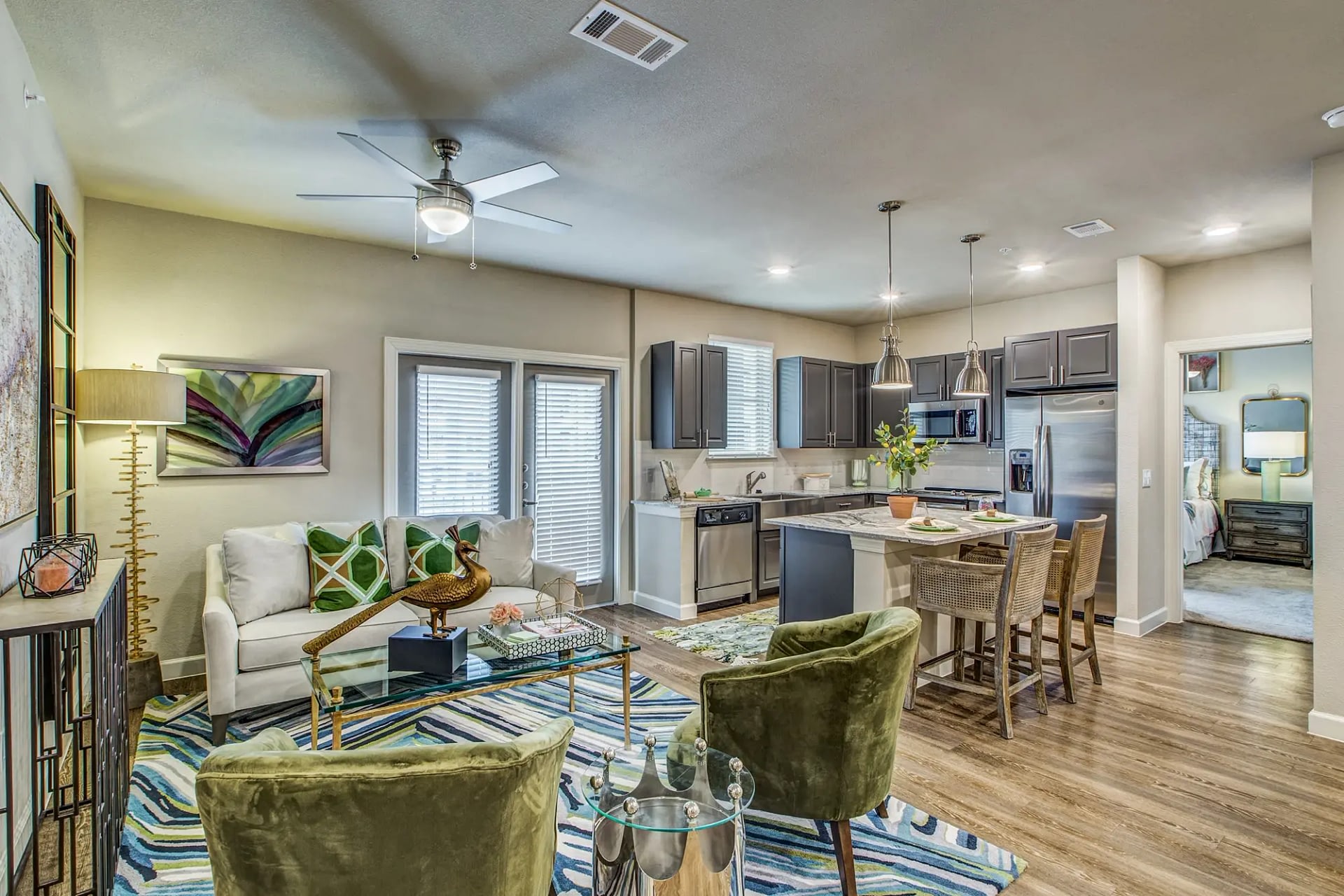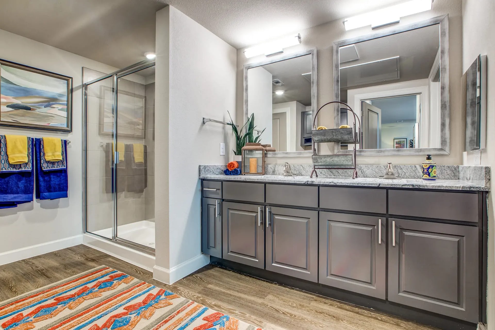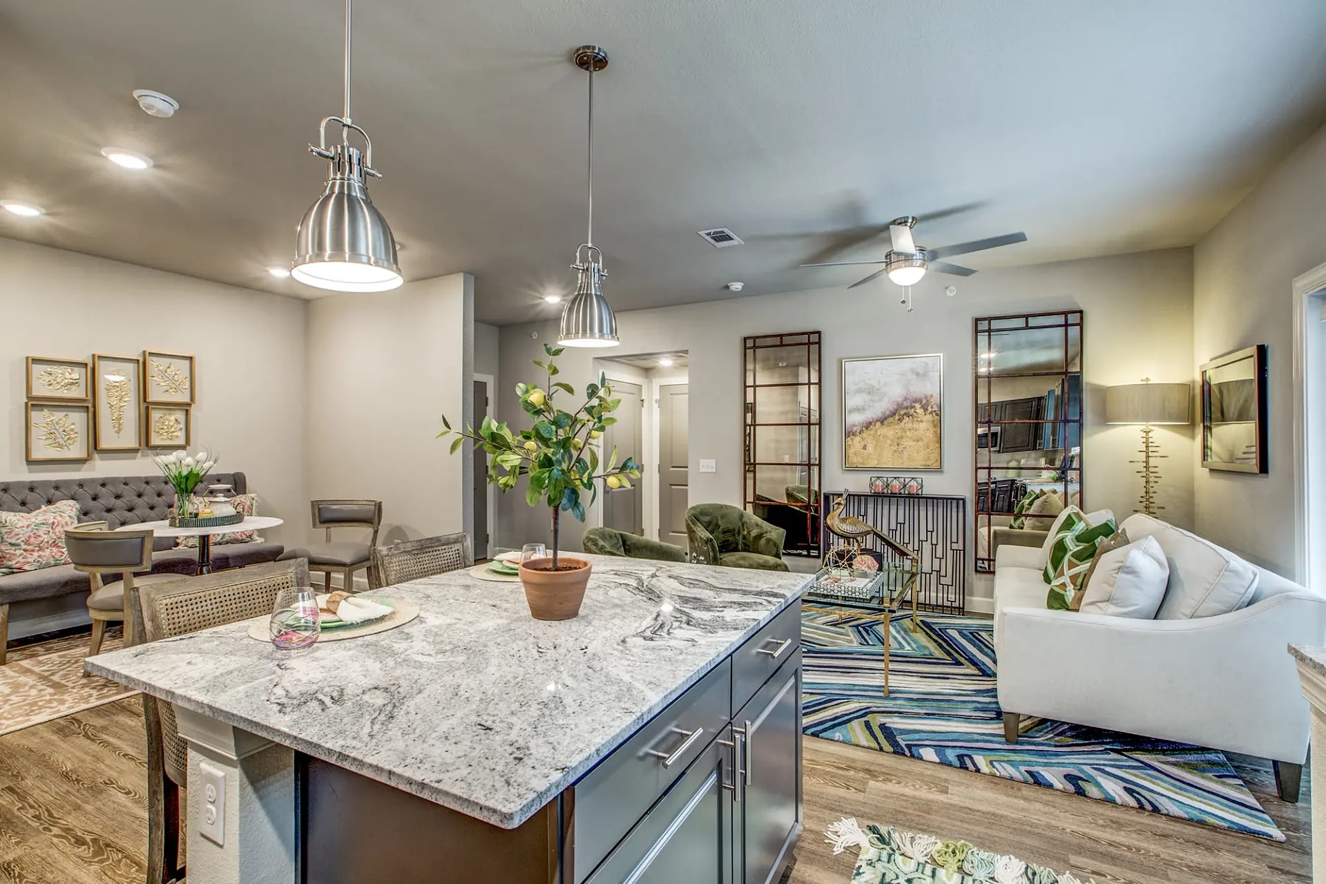 Our senior living apartments in Conroe, TX, offer spacious, thoughtfully designed layouts with high-end finishes that enhance everyday living. Each independent living residence includes full-size in-unit washers and dryers, expansive windows with custom treatments for plenty of natural light, walk-in closets for generous storage, and private patios or balconies for enjoying the outdoors.